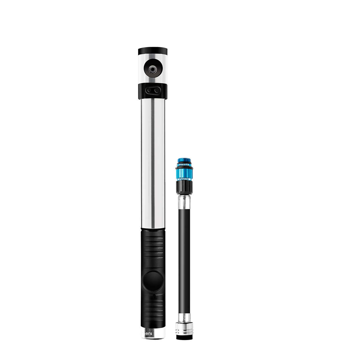 - Features include a magnetic head with twisting collar, a folding and locking handle, and a presta/schrader valve adapter (fully threaded presta valve bodies only)