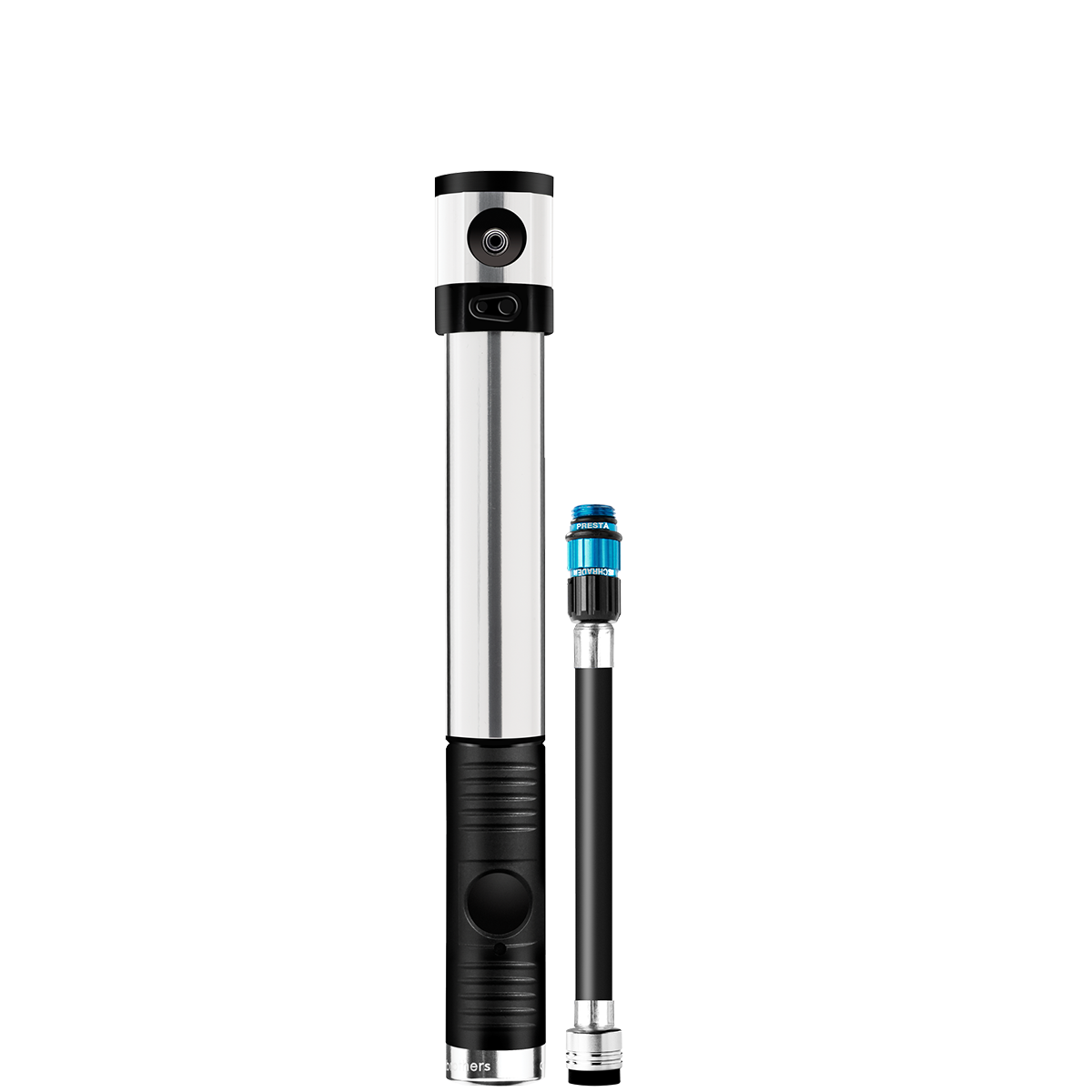 - Features include a magnetic head with twisting collar, a folding and locking handle, and a presta/schrader valve adapter (fully threaded presta valve bodies only)